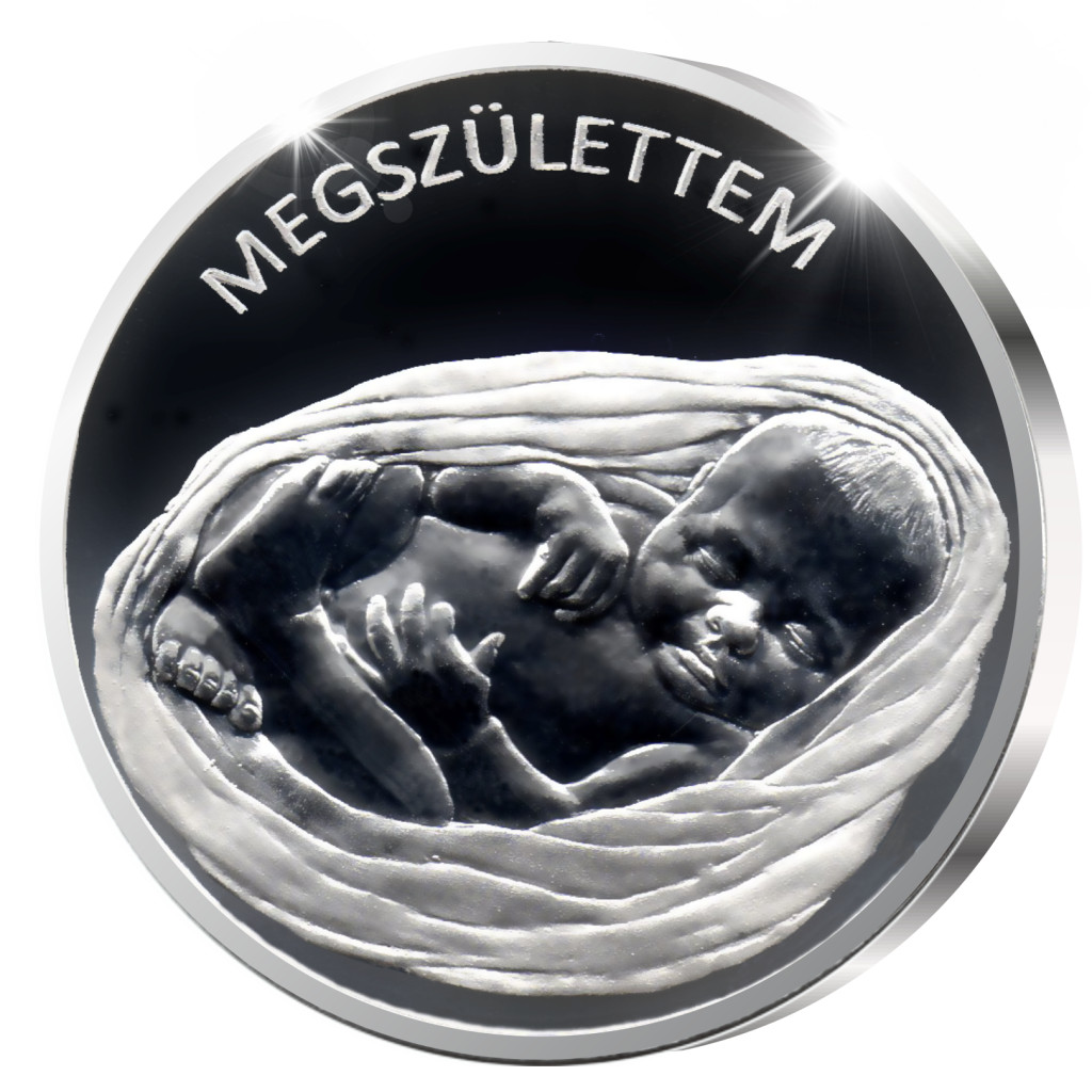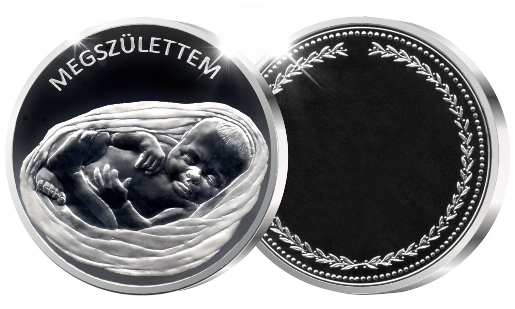 Megszülettem emlékérem - ezüstözött bronz