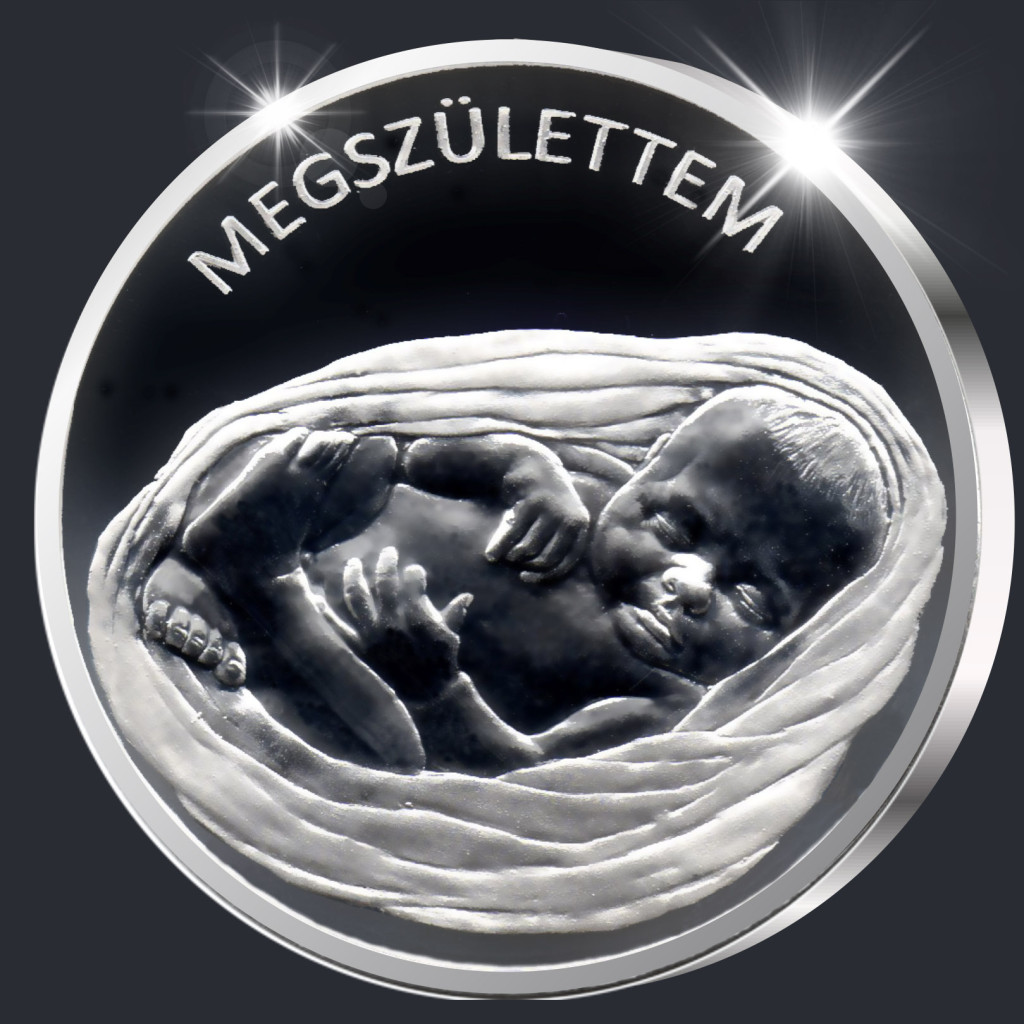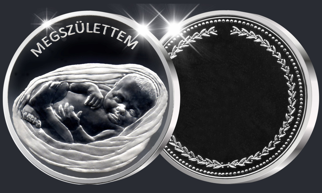 Emlékérem kisgyermek születése alkalmából. Hátoldalára egyedi szöveg véshető. Tökéletes ajándék gyermek érkezésének megünneplésére!